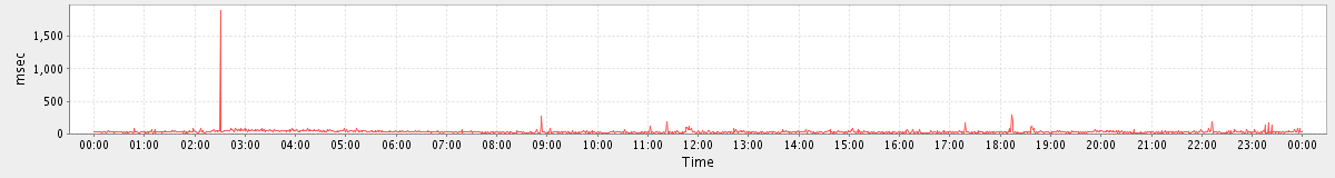 avg(SendMsgRequest) = 189.54 avg(BackupQueryRequest) = 371.20 avg(GetFreeBusyRequest) = 295.35 avg(BrowseRequest) = 1496.00 avg(SendInviteReplyRequest) = 254.30 avg(AutoCompleteRequest) = 470.76 avg(ConvActionRequest.delete) = 198.38 avg(FolderActionRequest.empty) = 826.77 avg(BackupRequest) = 5089.00 avg(GetQuotaUsageRequest) = 934.00