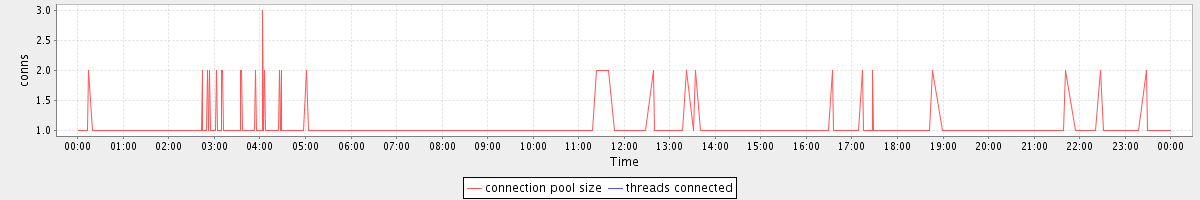 avg(connection pool size) = 0.25 avg(threads connected) = 0.00