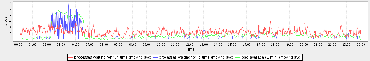 avg(processes waiting for run time) = 1.44 avg(processes waiting for io time) = 0.42 avg(load average (1 min)) = 1.78