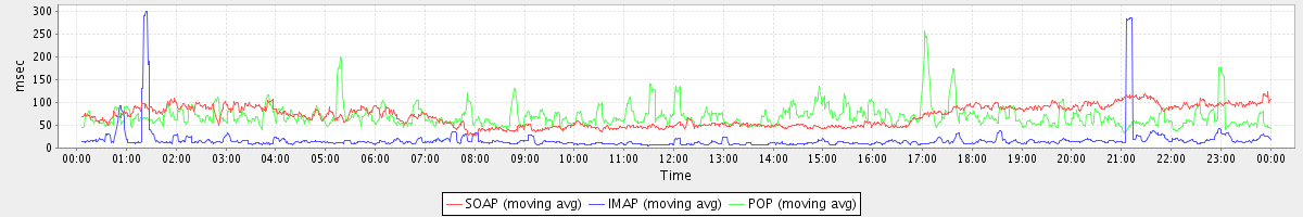 avg(IMAP) = 18.59 avg(IMAP SSL) = 809.00 avg(POP) = 0.00 avg(POP SSL) = 2.58