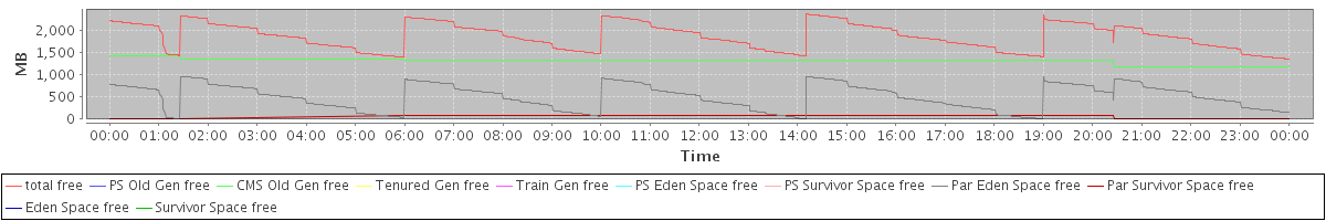 avg(total free) = 1862.77 avg(PS Old Gen free) = 0.00 avg(CMS Old Gen free) = 1313.20 avg(Tenured Gen free) = 0.00 avg(Train Gen free) = 0.00 avg(PS Eden Space free) = 0.00 avg(PS Survivor Space free) = 0.00 avg(Par Eden Space free) = 497.16 avg(Par Survivor Space free) = 52.40 avg(Eden Space free) = 0.00 avg(Survivor Space free) = 0.00