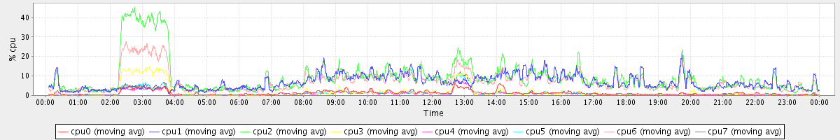 avg(cpu0) = 1.69 avg(cpu1) = 1.77 avg(cpu2) = 1.95 avg(cpu3) = 1.45 avg(cpu4) = 1.10 avg(cpu5) = 1.33 avg(cpu6) = 1.54 avg(cpu7) = 1.25