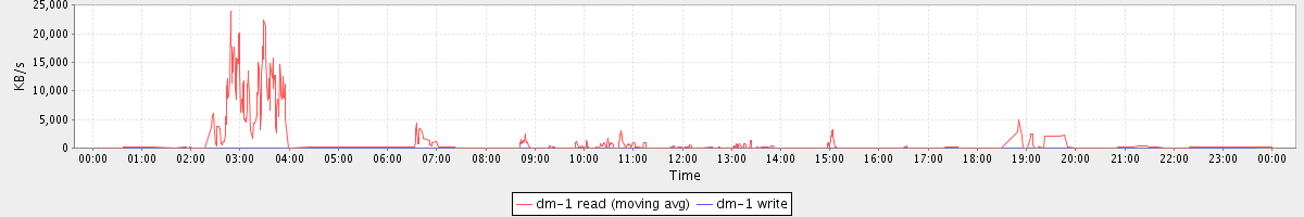 avg(dm-1 read) = 11.84 avg(dm-1 write) = 0.06