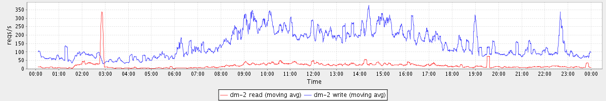 avg(dm-2 read) = 264.36 avg(dm-2 write) = 899.87