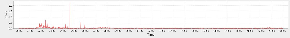 max(SearchRequest) = 603.00 max(MsgActionRequest.delete) = 473.00 max(NoOpRequest) = 189.00 max(MsgActionRequest.update) = 159.00 max(GetDomainInfoRequest) = 154.00 max(ModifyContactRequest) = 140.00 max(GetFolderRequest) = 785.00 max(ItemActionRequest.delete) = 162.00 max(SyncRequest) = 948.00 max(GetAppointmentRequest) = 1623.00