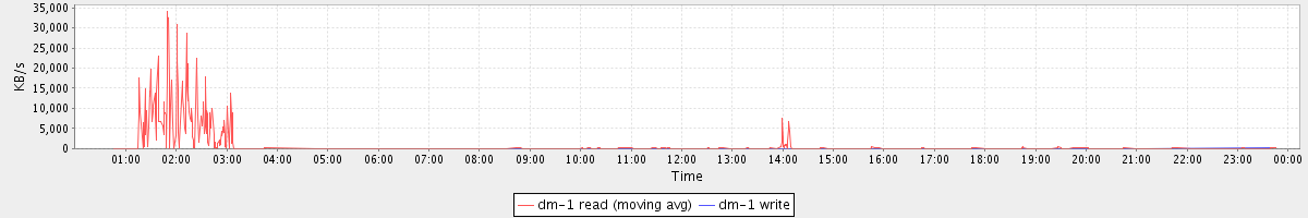 avg(dm-1 read) = 13.39 avg(dm-1 write) = 0.02