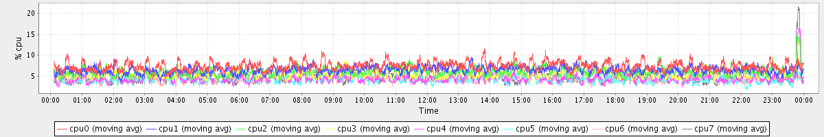 avg(cpu0) = 1.14 avg(cpu1) = 0.79 avg(cpu2) = 0.71 avg(cpu3) = 0.65 avg(cpu4) = 0.43 avg(cpu5) = 0.38 avg(cpu6) = 0.41 avg(cpu7) = 0.38