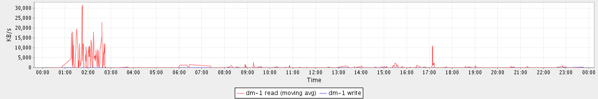 avg(dm-1 read) = 7.99 avg(dm-1 write) = 0.03