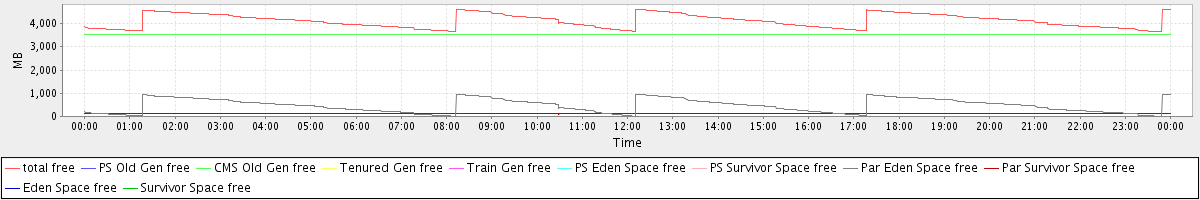 avg(total free) = 4118.03 avg(PS Old Gen free) = 0.00 avg(CMS Old Gen free) = 3541.85 avg(Tenured Gen free) = 0.00 avg(Train Gen free) = 0.00 avg(PS Eden Space free) = 0.00 avg(PS Survivor Space free) = 0.00 avg(Par Eden Space free) = 465.12 avg(Par Survivor Space free) = 111.06 avg(Eden Space free) = 0.00 avg(Survivor Space free) = 0.00