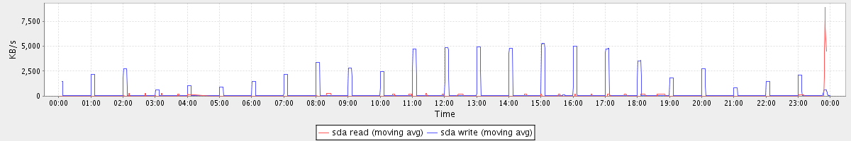 avg(sda read) = 20.79 avg(sda write) = 379.76