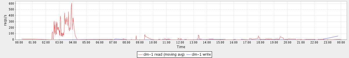 avg(dm-1 read) = 10.61 avg(dm-1 write) = 0.05