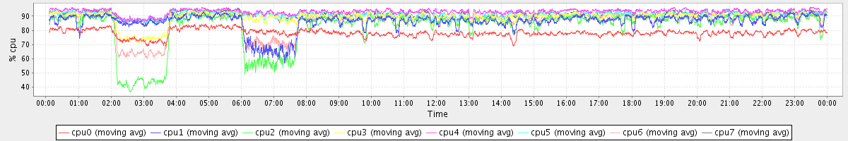 avg(cpu0) = 78.20 avg(cpu1) = 86.19 avg(cpu2) = 82.28 avg(cpu3) = 89.07 avg(cpu4) = 93.21 avg(cpu5) = 91.09 avg(cpu6) = 86.70 avg(cpu7) = 91.42