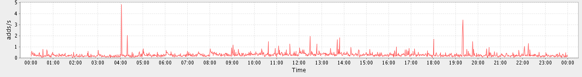 max(GetAccountRequest) = 28.00 max(SearchConvRequest) = 28.00 max(GetFolderRequest) = 753.00 max(SearchRequest) = 67.00 max(ContactActionRequest.delete) = 29.00 max(MsgActionRequest.delete) = 136.00 max(NoOpRequest) = 57.00 max(SyncRequest) = 282.00 max(GetEffectiveFolderPermsRequest) = 46.00 max(MsgActionRequest.update) = 191.00