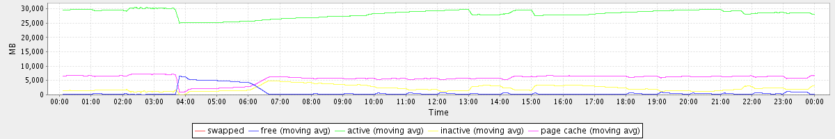 avg(swapped) = 0.00 avg(free) = 835.07 avg(active) = 28309.50 avg(inactive) = 2261.04 avg(page cache) = 5799.39