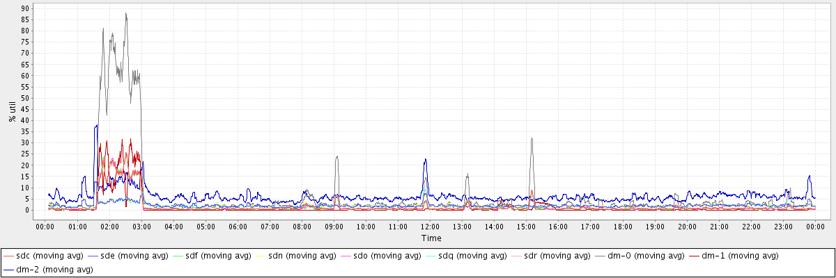avg(sdc) = 1.64 avg(sde) = 2.08 avg(sdf) = 1.64 avg(sdn) = 2.10 avg(sdo) = 1.63 avg(sdq) = 2.07 avg(sdr) = 1.65 avg(dm-0) = 6.07 avg(dm-1) = 1.35 avg(dm-2) = 6.22