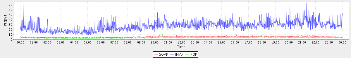 Host zm05.stanford.edu: Mailboxd: Request Rate by Client Protocol