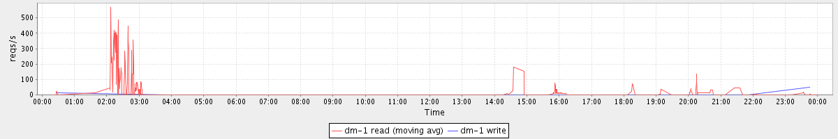 avg(dm-1 read) = 5.73 avg(dm-1 write) = 0.03