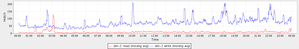 avg(dm-0 read) = 21.80 avg(dm-0 write) = 28.04