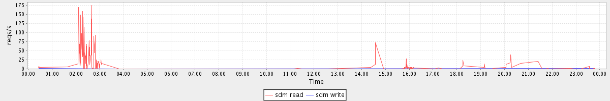 avg(sda read) = 0.74 avg(sda write) = 3.63