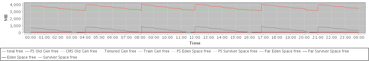 avg(total free) = 3629.27 avg(PS Old Gen free) = 0.00 avg(CMS Old Gen free) = 3086.15 avg(Tenured Gen free) = 0.00 avg(Train Gen free) = 0.00 avg(PS Eden Space free) = 0.00 avg(PS Survivor Space free) = 0.00 avg(Par Eden Space free) = 452.68 avg(Par Survivor Space free) = 90.44 avg(Eden Space free) = 0.00 avg(Survivor Space free) = 0.00