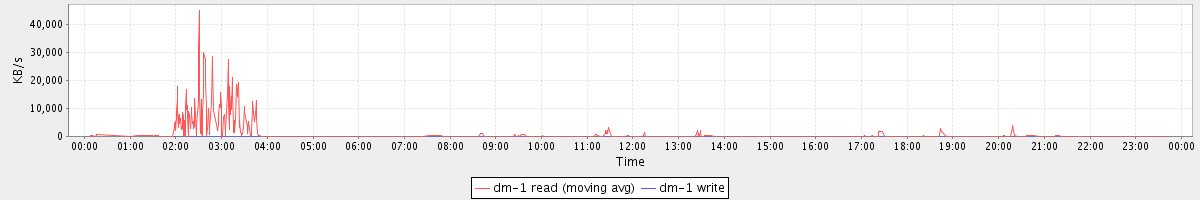 avg(dm-1 read) = 11.15 avg(dm-1 write) = 0.04