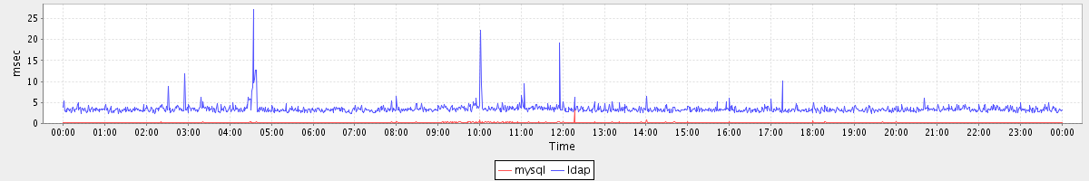 avg(mysql) = 0.22 avg(ldap) = 3.49