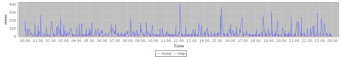 avg(mysql) = 0.20 avg(ldap) = 15.24