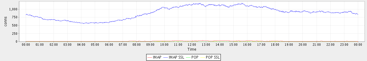 avg(IMAP) = 13.94 avg(IMAP SSL) = 888.78 avg(POP) = 0.51 avg(POP SSL) = 2.74
