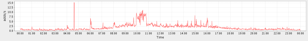 avg(ModifyAppointmentRequest) = 475.85 avg(SyncGalRequest) = 31950.00 avg(CancelAppointmentRequest) = 478.57 avg(AutoCompleteRequest) = 569.48 avg(CheckPermissionRequest) = 552.11 avg(ItemActionRequest.delete) = 619.10 avg(ConvActionRequest.tag) = 811.76 avg(FolderActionRequest.empty) = 7480.14 avg(BackupRequest) = 3722.00 avg(GetQuotaUsageRequest) = 965.00