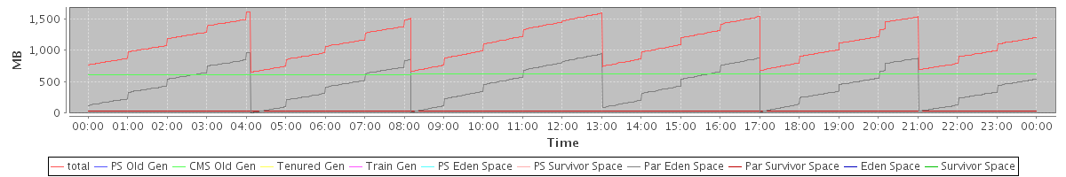avg(total) = 1093.93 avg(PS Old Gen) = 0.00 avg(CMS Old Gen) = 620.24 avg(Tenured Gen) = 0.00 avg(Train Gen) = 0.00 avg(PS Eden Space) = 0.00 avg(PS Survivor Space) = 0.00 avg(Par Eden Space) = 441.60 avg(Par Survivor Space) = 32.09 avg(Eden Space) = 0.00 avg(Survivor Space) = 0.00