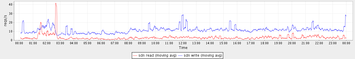 avg(sdn read) = 3.11 avg(sdn write) = 11.47