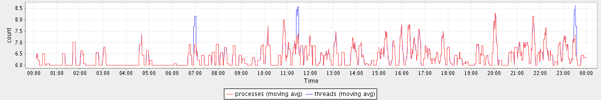 avg(processes) = 6.36 avg(threads) = 6.38