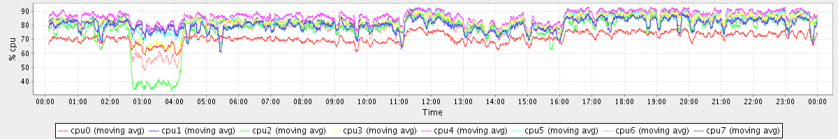 avg(cpu0) = 71.06 avg(cpu1) = 80.18 avg(cpu2) = 76.93 avg(cpu3) = 82.40 avg(cpu4) = 86.46 avg(cpu5) = 83.16 avg(cpu6) = 79.15 avg(cpu7) = 83.73