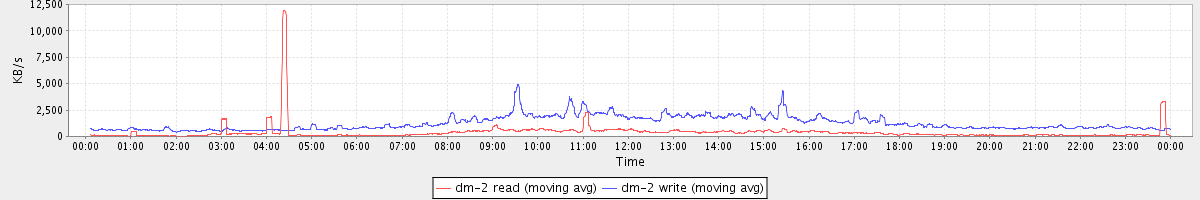 avg(dm-1 read) = 12.29 avg(dm-1 write) = 0.04