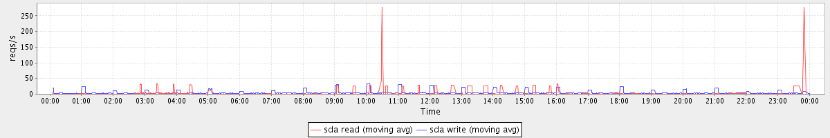 avg(sda read) = 31.21 avg(sda write) = 323.45