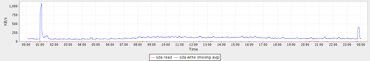 avg(sda1 read) = 0.00 avg(sda1 write) = 2.22