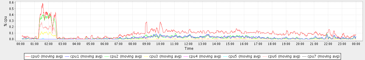 avg(cpu0) = 0.10 avg(cpu1) = 0.02 avg(cpu2) = 0.04 avg(cpu3) = 0.01 avg(cpu4) = 0.00 avg(cpu5) = 0.00 avg(cpu6) = 0.02 avg(cpu7) = 0.00