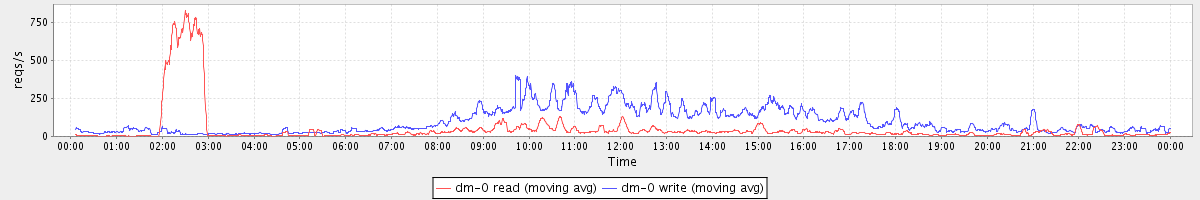 avg(dm-0 read) = 807.82 avg(dm-0 write) = 392.98
