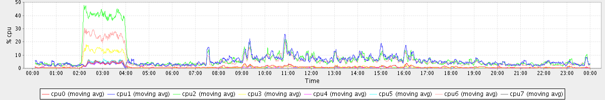 avg(cpu0) = 1.14 avg(cpu1) = 0.15 avg(cpu2) = 0.21 avg(cpu3) = 0.12 avg(cpu4) = 0.07 avg(cpu5) = 0.10 avg(cpu6) = 0.12 avg(cpu7) = 0.09