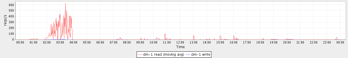 avg(dm-1 read) = 578.54 avg(dm-1 write) = 0.36