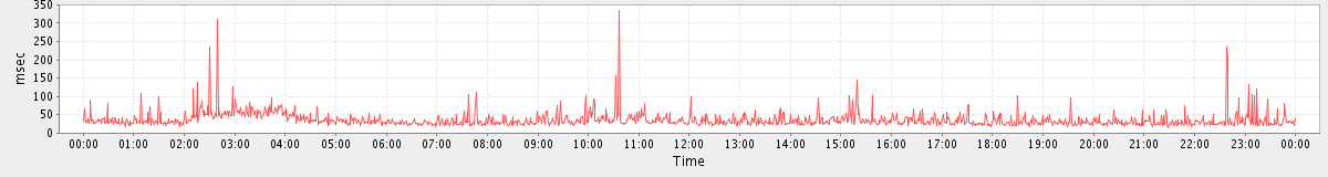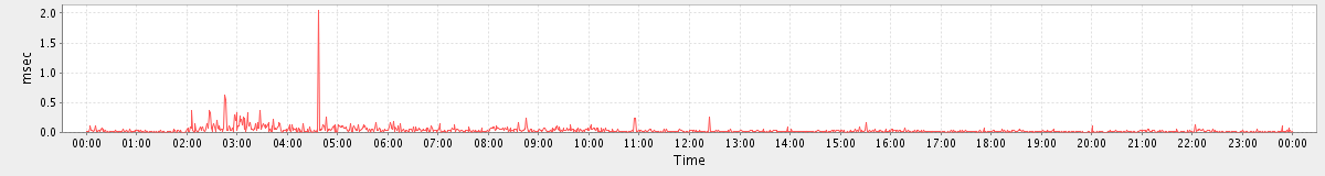 avg(GetContactsRequest) = 270.63 avg(SyncGalRequest) = 5408.33 avg(CreateAppointmentExceptionRequest) = 316.61 avg(FolderActionRequest.delete) = 478.78 avg(SendInviteReplyRequest) = 487.81 avg(AutoCompleteRequest) = 605.02 avg(ApplyFilterRulesRequest) = 1155.00 avg(FolderActionRequest.empty) = 1945.83 avg(BackupRequest) = 4637.00 avg(GetQuotaUsageRequest) = 947.00