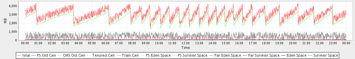avg(total) = 3039.38 avg(PS Old Gen) = 0.00 avg(CMS Old Gen) = 2483.71 avg(Tenured Gen) = 0.00 avg(Train Gen) = 0.00 avg(PS Eden Space) = 0.00 avg(PS Survivor Space) = 0.00 avg(Par Eden Space) = 472.33 avg(Par Survivor Space) = 83.34 avg(Eden Space) = 0.00 avg(Survivor Space) = 0.00