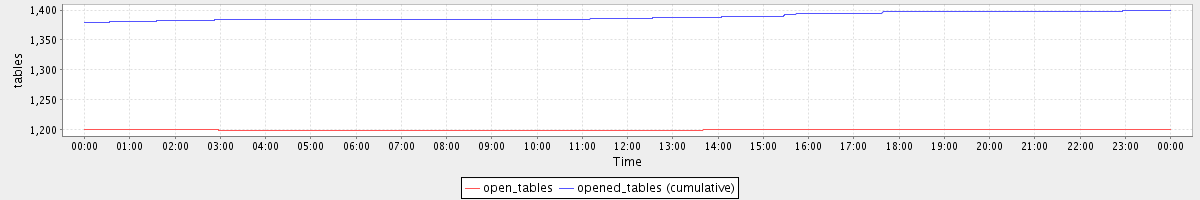 avg(open_tables) = 1199.55 avg(opened_tables (cumulative)) = 1389.06