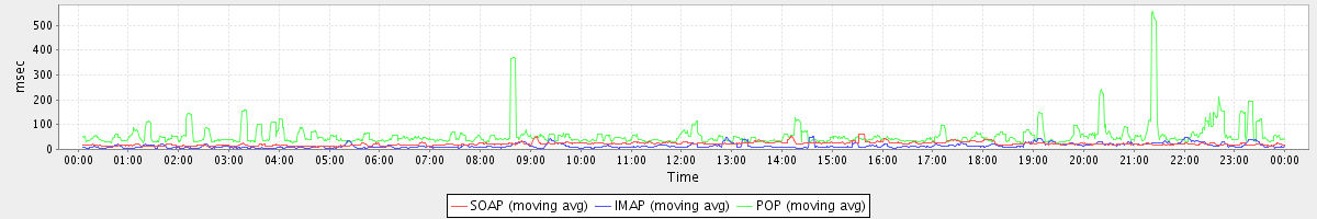 Host zm04.stanford.edu: Mailboxd: Response Time by Client Protocol