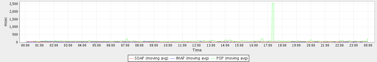 avg(IMAP) = 15.04 avg(IMAP SSL) = 851.55 avg(POP) = 0.10 avg(POP SSL) = 3.44