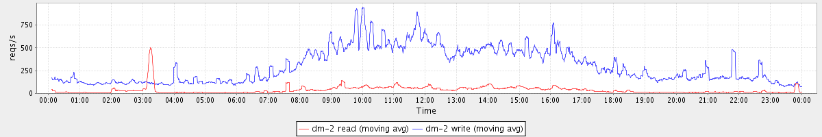 avg(dm-2 read) = 557.09 avg(dm-2 write) = 1650.05