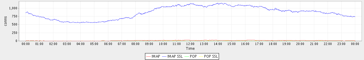 avg(IMAP) = 11.85 avg(IMAP SSL) = 865.55 avg(POP) = 0.54 avg(POP SSL) = 2.38
