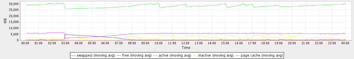 avg(swapped) = 0.25 avg(free) = 813.91 avg(active) = 28354.58 avg(inactive) = 2343.04 avg(page cache) = 5201.97