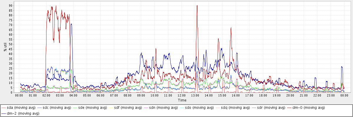 avg(sda) = 0.94 avg(sdc) = 4.47 avg(sde) = 5.57 avg(sdf) = 4.45 avg(sdn) = 5.60 avg(sdo) = 4.46 avg(sdq) = 5.62 avg(sdr) = 4.51 avg(dm-0) = 16.58 avg(dm-2) = 16.21