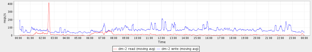 avg(dm-2 read) = 336.39 avg(dm-2 write) = 550.50